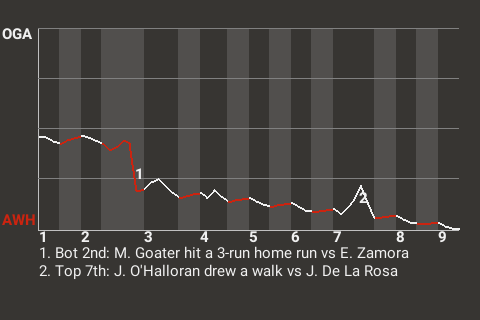In the bottom of the second inning, first baseman Micah Goater had a 3-run home run for Amarillo. It was his 8th home run of the season and put the Warheads on top, 3-0.