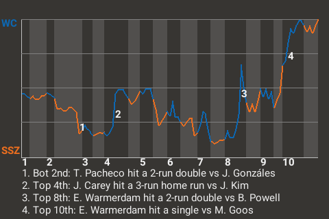 (6, 10th Inning off M. Goos, 3 on, 1 out)
