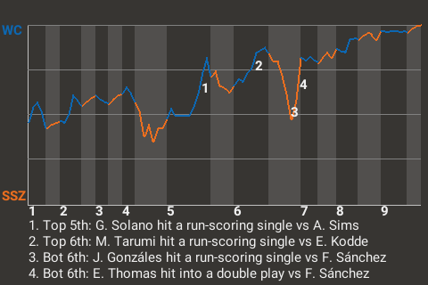 2 (10, 4th Inning off P. Bagliani, 1 on, 0 outs; 7th Inning off F. Sánchez, 0 on, 2 outs)