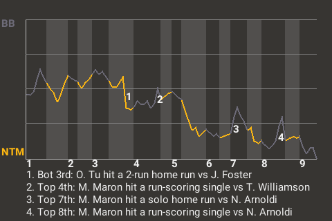 2 (2, 3rd Inning off D. Perry, 0 on, 0 outs; 8th Inning off T. Park, 0 on, 0 outs)