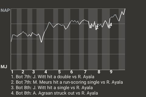 Rain delay of 27 minutes in the 4th inning.