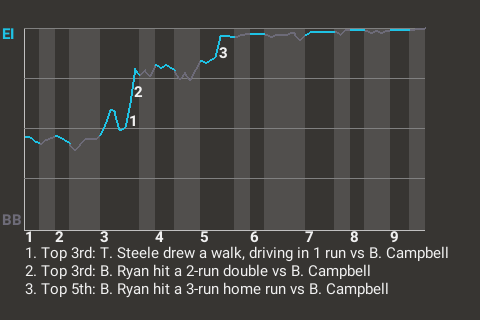 2 (2, 1st Inning off E. Alvarado, 0 on, 0 outs; 5th Inning off E. Alvarado, 0 on, 1 out)