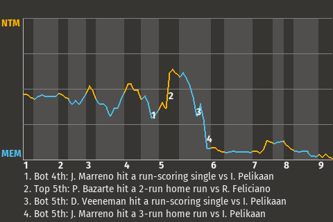 2 (7, 1st Inning off P. Mejía, 2 on, 1 out; 6th Inning off P. Mejía, 0 on, 2 outs)