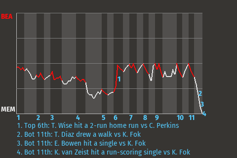Albert Hernández had a good game, but he could not keep the Memphis Music from falling, 8-4, to the Watford City Trash Pandas at Trash Panda Field. The Memphis catcher went 3-4 with a double and 2 singles. He scored 2 times in the loss. Watford City reliever Román Arroyo picked up the win, upping his record to 1-0. Don Finley absorbed the loss. Memphis, at 31-34, has lost 4 straight.