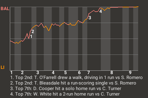 2 (8, 7th Inning off C. Turner, 0 on, 0 outs; 8th Inning off B. Flannery, 1 on, 1 out)