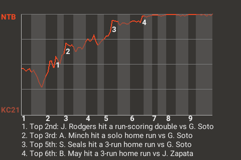 The Warheads got a big at-bat from second baseman Monty Scott. For the game, Scott went 1 for 3 with a home run. He drove in 3 runs and scored once. In the bottom of the fourth, with runners on 1st and 2nd, he stroked a 3-run home run. His 7th home run of the season gave Amarillo a 3-1 lead.