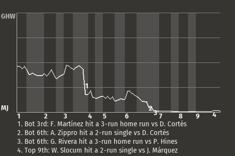 In the bottom of the third inning, shortstop Juan Pérez had a 2-run home run for Long Island. It was his 2nd home run of the season and put the Ducks on top, 3-1.
