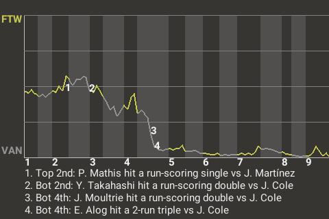 (9, 4th Inning off J. Cole, 2 on, 1 out)
