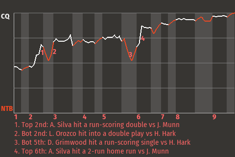 2 (34, 4th Inning off R. Saldana, 0 on, 0 outs; 5th Inning off F. Lépine, 0 on, 1 out)