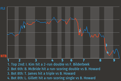 2 (8, 2nd Inning off L. Sheppard, 1 on, 2 outs; 4th Inning off L. Sheppard, 1 on, 2 outs)