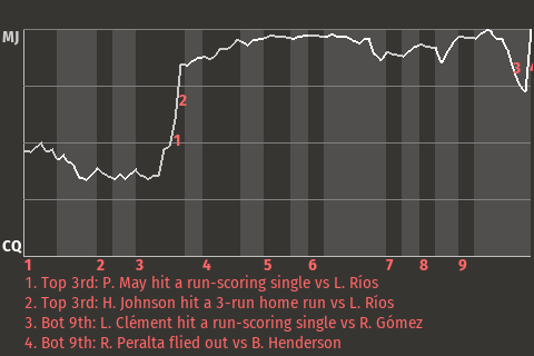 2 (4, 7th Inning off G. Martínez, 0 on, 0 outs; 9th Inning off H. MacKnight, 0 on, 0 outs)
