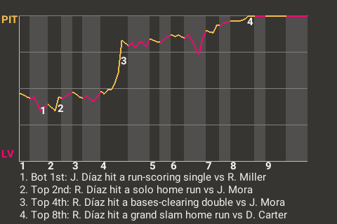 (9, 4th Inning off J. Mora, 3 on, 1 out)