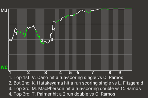 2 (10, 3rd Inning off A. Gonzáles, 0 on, 0 outs; 6th Inning off R. Gómes, 1 on, 2 outs)