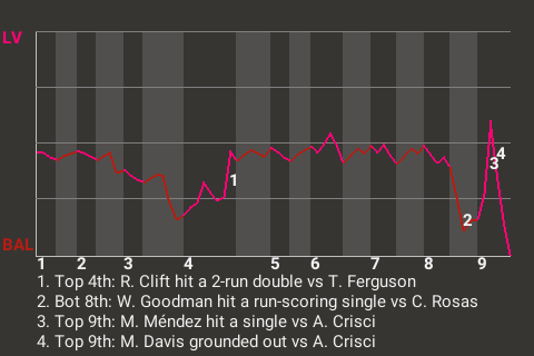 2 (9, 3rd Inning off S. Weaver, 1 on, 2 outs; 8th Inning off C. Rosas, 0 on, 0 outs)