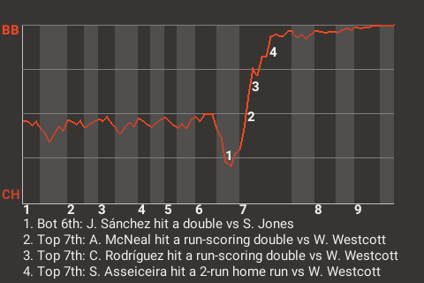 2 (6, 1st Inning off E. Alvarado, 1 on, 1 out; 7th Inning off E. Alvarado, 0 on, 2 outs)