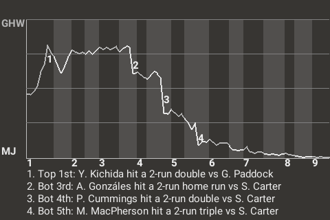 (9, 6th Inning off J. Rowe, 1 on, 1 out)