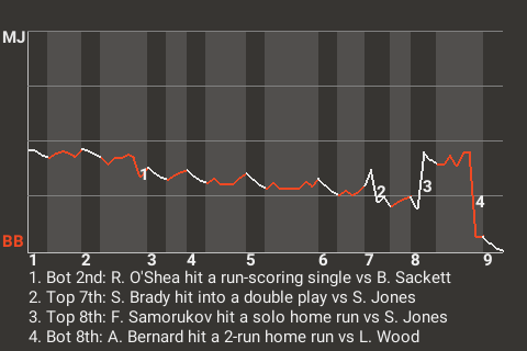 b - F. Cowan pinch hit for B. Vázquez in the 9th