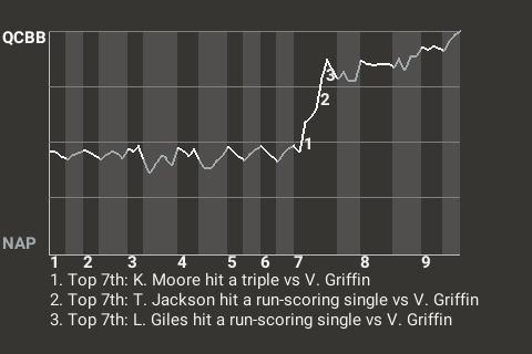 Quebec City used the timely hitting of Lance Giles to seize the win. The first baseman stroked a run-scoring single in the top of the seventh inning to put the Baby Blues on top, 2-0. It was his only hit in 4 at-bats, but it was a game-changer.