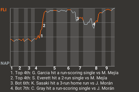 (4, 6th Inning off J. Morán, 2 on, 1 out)