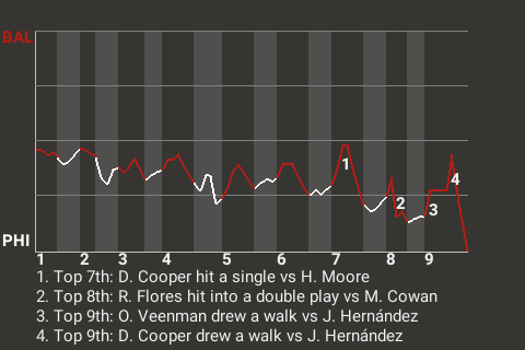 Today's win puts Philadelphia at 30-19, while Baltimore falls to 21-28.