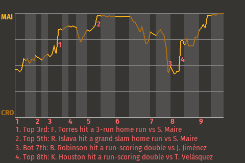 2 (7, 1st Inning off E. Chávez, 2 on, 1 out; 6th Inning off I. Galloway, 2 on, 0 outs)