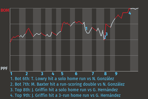(9, 7th Inning off V. Griffin, 0 on, 0 outs)