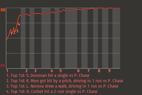 The Ladue Rams defeated the Ellesmere Island Snowpeople, 4-3, in part because of center fielder Tomás Guzmán. Guzmán went 3 for 4 with 3 singles and a walk for the Rams. The winner was Hisanobu Harada in relief. His record improves to 3-0. Will Stephens took the loss. Ladue is now 31-33, Ellesmere Island 34-30.