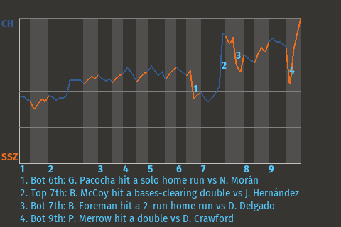 With Ladue leading 2-0 in the bottom of the third, Cora hit a fastball from Leonard Ramírez for a 3-run home run. It was his 8th home run of the season and put the Rams ahead, 5-0.
