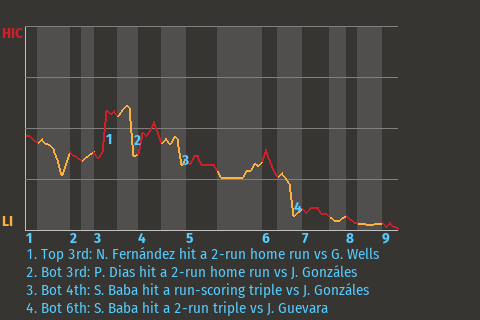 2 (7, 4th Inning off A. Gonzáles, 0 on, 0 outs; 8th Inning off A. Gonzáles, 0 on, 2 outs)