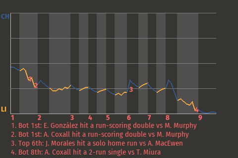 (5, 9th Inning off S. Starr, 2 on, 0 outs)