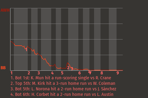 a - F. Cowan pinch hit for B. Vázquez in the 7th