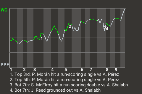 2 (18, 1st Inning off C. Pérez, 1 on, 1 out; 5th Inning off C. Pérez, 2 on, 0 outs)