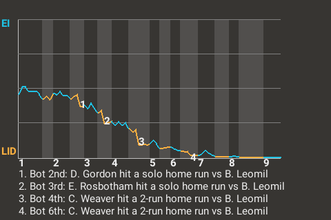 2 (16, 4th Inning off B. Davidson, 0 on, 0 outs; 7th Inning off B. Velásquez, 1 on, 2 outs)