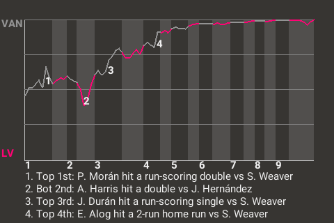 Early in the game, Morán had a run-scoring double for Vancouver. It was his 5th double of the season and put the Grey Wolves on top, 1-0.