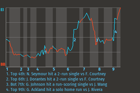 (9, 5th Inning off M. Bradshaw, 2 on, 1 out)