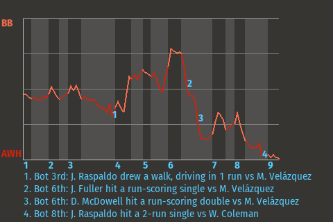 3 (5, 2nd Inning off E. Zamora, 0 on, 1 out; 5th Inning off E. Zamora, 0 on, 2 outs; 7th Inning off E. Zamora, 0 on, 2 outs)