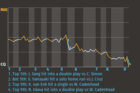 a - J. Reyes pinch hit for K. Sasaki in the 7th