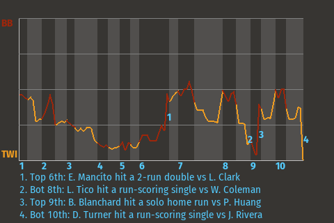b - B. Richards pinch hit for C. Wilson in the 9th