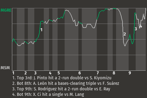 2 (2, 6th Inning off R. López, 0 on, 0 outs; 9th Inning off J. López, 2 on, 1 out)
