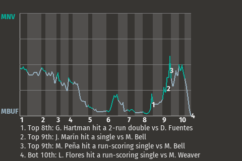 (1, 9th Inning off C. González, 0 on, 1 out)