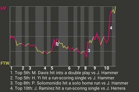 The game was at a stalemate until center fielder Jeffrey Ramírez came to bat in the top of the tenth. Facing Ft. Worth pitcher Joaquín Herrera, he hit a 3-1 fastball for a run-scoring single. It was a game-changer, putting Las Vegas on top, 4-3.