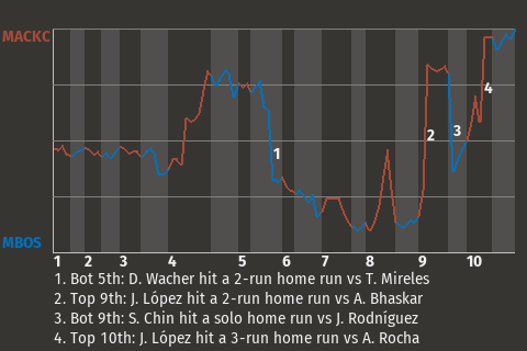 MSL Boston center fielder Si-on Yi played a vital role in his team's 5-1 conquest of MSL Buffalo. He went 3-4 with a home run, 2 singles, and a walk. He drove in 4 runs and scored once for MSL Boston. Alfredo Sousa snagged the win in relief. The right-hander allowed 1 run on 1 hit over 4.1 innings. He's now 1-0 on the season. With the win, the Patriots hiked their record to 5-5.