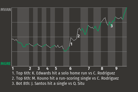 2 (3, 3rd Inning off B. Veeneman, 0 on, 0 outs; 9th Inning off F. Meléndez, 0 on, 2 outs)