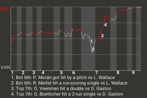 Baltimore used the timely hitting of Gale Boetticher to seize the win. The designated hitter stroked a 2-run single in the top of the seventh inning to put the Bullets on top, 3-1. It was his only hit in 2 at-bats, but it was a game-changer.
