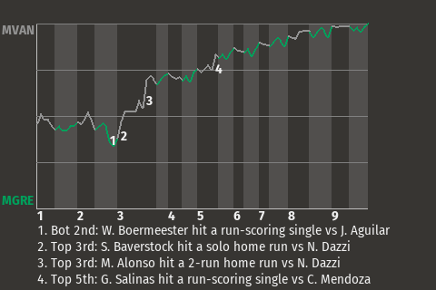 The Mockingbirds got a big boost from shortstop Jed Dye who had a run-scoring ground out in the bottom of the third inning off Thunder hurler Carlos López. It was his 4th RBI of the season and put MSL Memphis on top, 1-0.