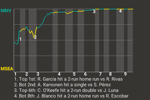 Chávez had a game-changing home run in the top of the tenth. On a 1-1 fastball from Romochka Vlyalko, he banged a 3-run home run to right, giving the Rocketeers a 7-4 lead. It was the 3rd home run of the year for Chávez.