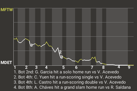(6, 6th Inning off A. Pérez, 0 on, 0 outs)