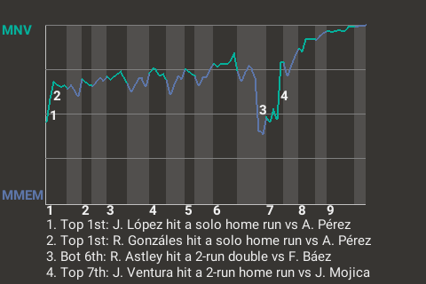 (9, 7th Inning off A. Pérez, 0 on, 1 out)
