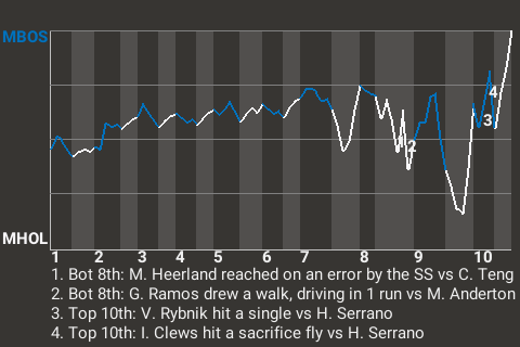 3 (10, 4th Inning off F. Meléndez, 2 on, 2 outs; 7th Inning off N. Sakai, 0 on, 0 outs; 9th Inning off N. Sakai, 0 on, 0 outs)