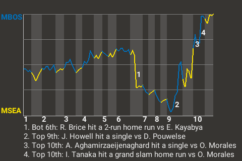 2 (12, 2nd Inning off D. Mickey, 0 on, 0 outs; 10th Inning off T. Kato, 2 on, 1 out)